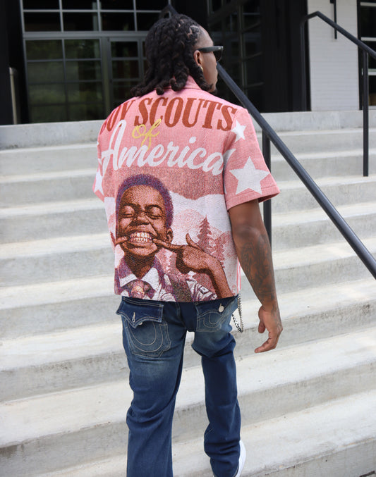 BOYS OF AMERICA HANDMADE TAPESTRY JACQUARD FABRIC WORK SHIRT PINK