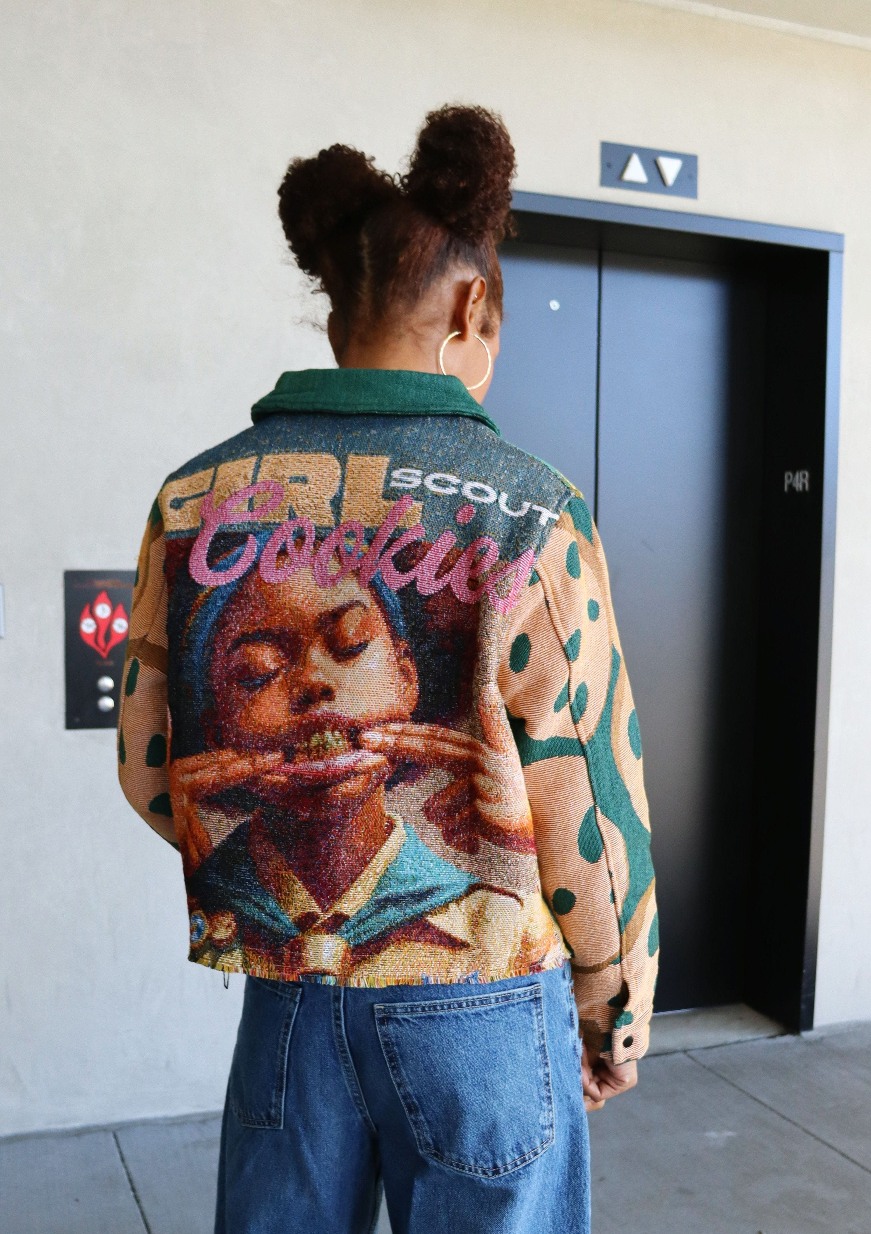 (WOMENS) GIRL SCOUT COOKIES HANDMADE TAPESTRY JACQUARD SHIRT